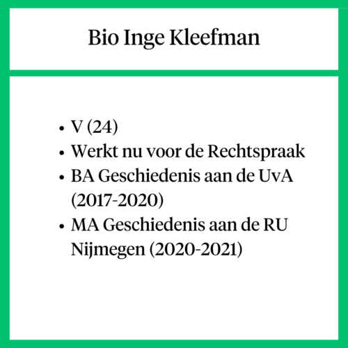 Ondanks alles denk ik dat mijn achtergrond mij uiteindelijk heeft geholpen tijdens mijn studie. Ik kreeg vaak te horen dat ik academisch, maar toegankelijk schreef. Ik heb nooit geprobeerd om ‘elitair’ taalgebruik in te zetten. Ik wilde dat geschiedenis toegankelijk zou zijn. Daarnaast denk ik dat de onderlinge verschillen bij een vak als geschiedenis makkelijker te overbruggen zijn. Vrijwel iedereen deed deze studie omdat er een oprechte interesse in het vakgebied achter schuilging. Er werd onderling vaak gegrapt over het ‘goede baanperspectief’ en ‘geweldige salaris’ dat ons te wachten stond, omdat wij onze studie niet op deze basis hadden gekozen. Zelfs tijdens momenten waarin ik mij een buitenstaander voelde, wist de passie voor het verleden ons te verbinden. Ten slotte ben ik altijd heel dankbaar geweest dat ik mijn bachelor en master heb mogen volgen. Mijn opa wilde dolgraag geschiedenis studeren, maar moest verplicht aan het werk in het bedrijf van zijn vader. Hij heeft nog geprobeerd om deze opleiding naast zijn werk te volgen, maar die combinatie was gewoonweg te veel. Dat ik nu wel geschiedenis heb mogen studeren is zeker niet iets wat ik als vanzelfsprekend beschouw.’